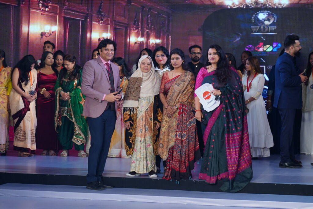 The following day unfolded with exclusive podcasts featuring participating designers, offering deeper insights into their creative journeys, followed by a national-level fashion show, where professional models walked the ramp showcasing the selected designers’ creations. The ramp presentation powerfully highlighted India’s diverse textiles, contemporary silhouettes, and sustainable fashion narratives.